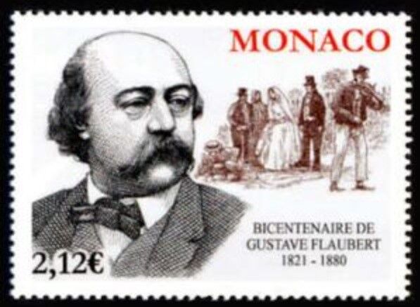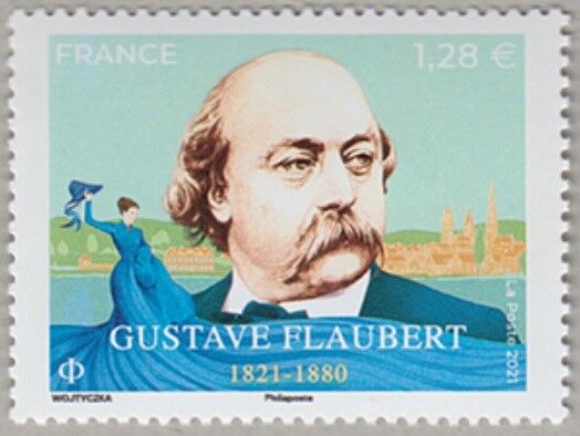 切手は2021年フランス発行の「フローベール生誕200年記念切手」で、彼の肖像が描かれています。