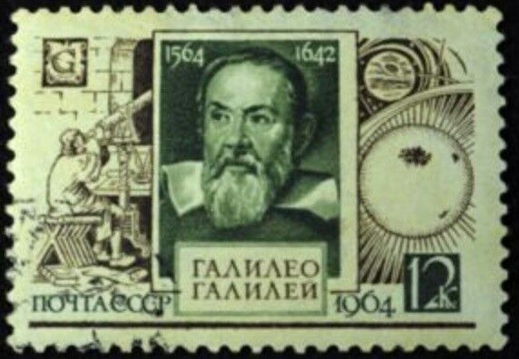 切手は2014年イタリア発行の「ガリレオ・ガリレイ生誕450年記念切手」で、彼の像が描かれています。