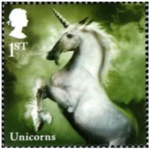 切手は2009年イギリス発行の「神話の動物切手」でユニコーンが描かれています。