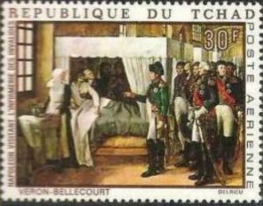 この絵画は、ベロン・ベルクールの作品て廃兵院を慰問するナポレオン1世が描かれています。